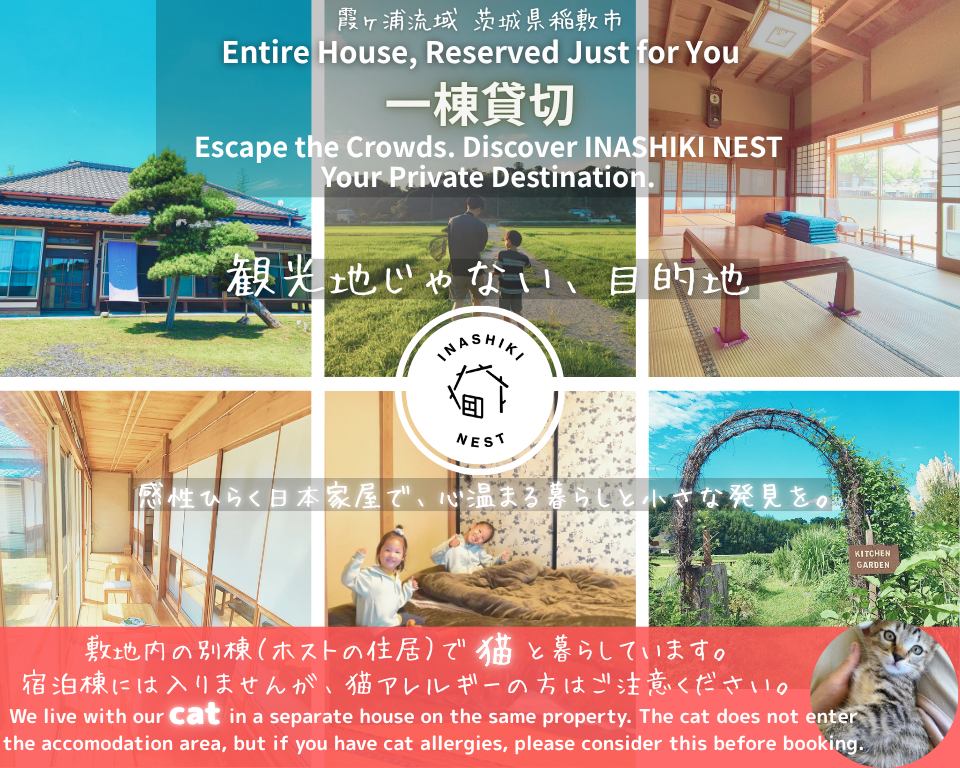 We “INASHIKI NEST” have received the Traveller Review Award 2024 from Booking.com*We are currently not listed on Booking.com. Please make your reservation via Airbnb.