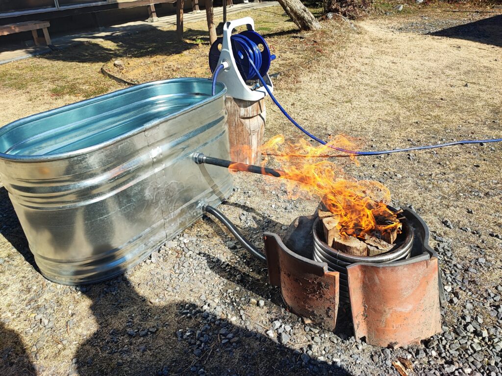 体験当日約4時間かけて薪でじっくりとお湯を育てております。