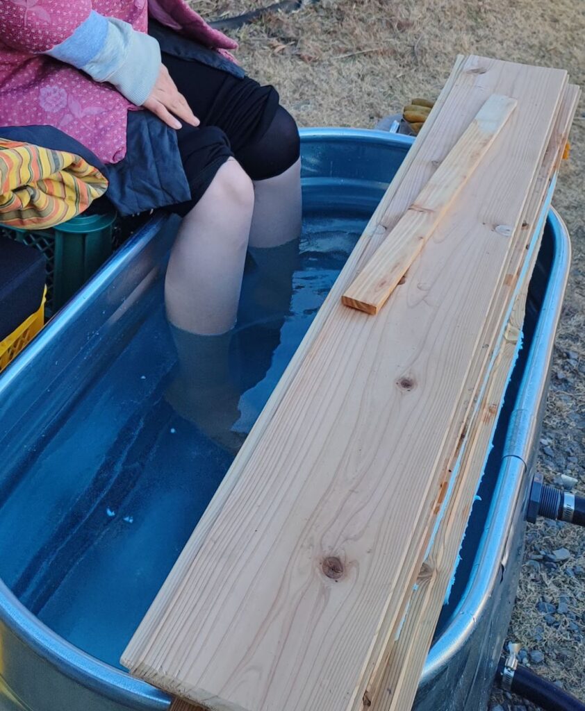 準備に約4時間ほどかかりますため、事前の準備はこちらで行いますが、ご希望があれば、足湯に使う薪を割ったり、薪をのこぎりで短く切ったりする体験も可能です。