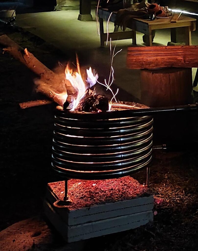 野遊びのように無心になり、ただ炎と湯を眺める。
