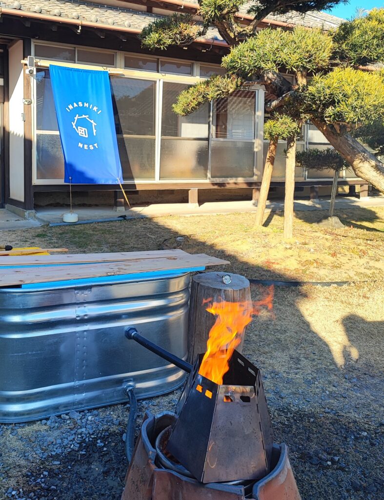 庭では数時間前から熾した火が、ゆっくりとお湯を温め、