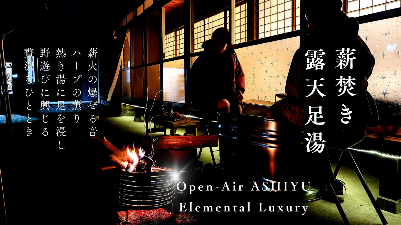 非効率ならではの非日常の「外で温まる」薪焚き露天足湯です。